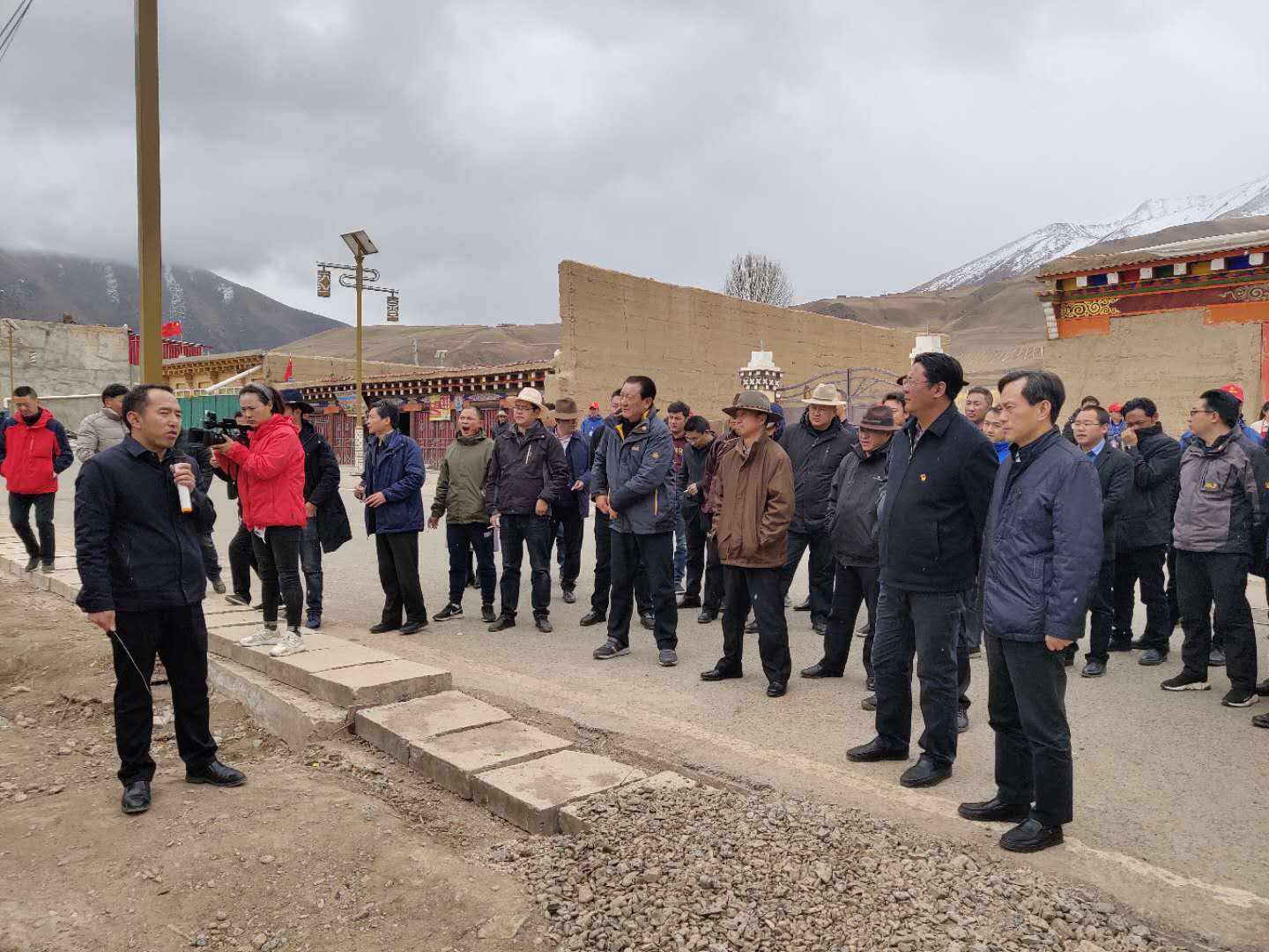德格县向考察团介绍温拖乡考察冷链物流基地建设情况。