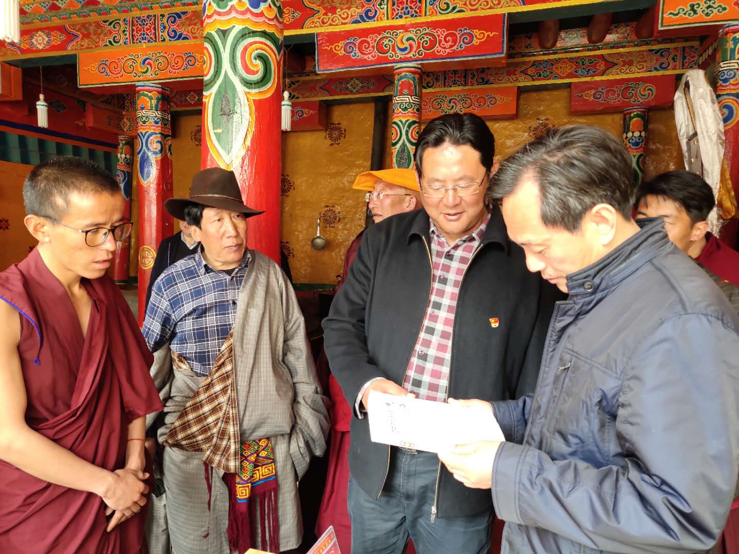 抵达中扎科乡更沙寺新型寺管会考察寺庙管理“五个一全覆盖”工作情况。更沙寺新型寺管会——牢牢牵住深度贫困地区寺庙“牛鼻子”的“创新举措”德格更沙寺新型寺管会设立于2013年,机构规格为正科级,人员编制7人,现有干部6人,其中主任1名,副主任一名,内设综合办公室、佛事管理科、法规宣传科、资产、安全管理科以及民管会负责人办公室等职能科室!新型寺管会办公、住宿大楼于2015年初正式投入使用,总投资达200万元。