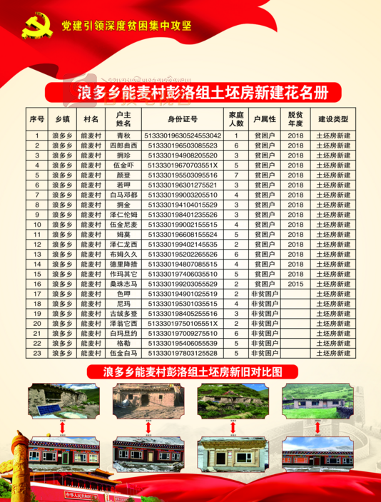 浪多乡伦麦村彭洛组土坯房建设情况,今夕对比。